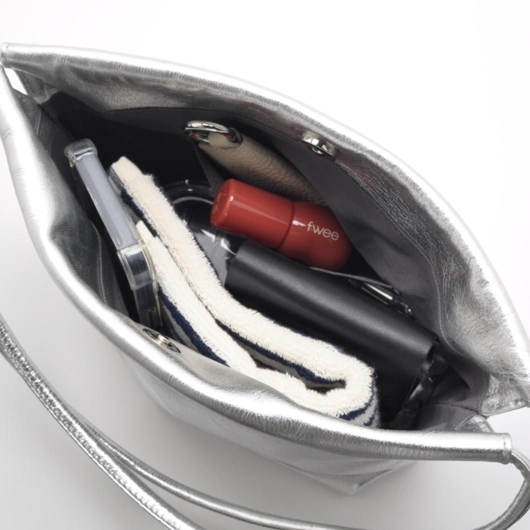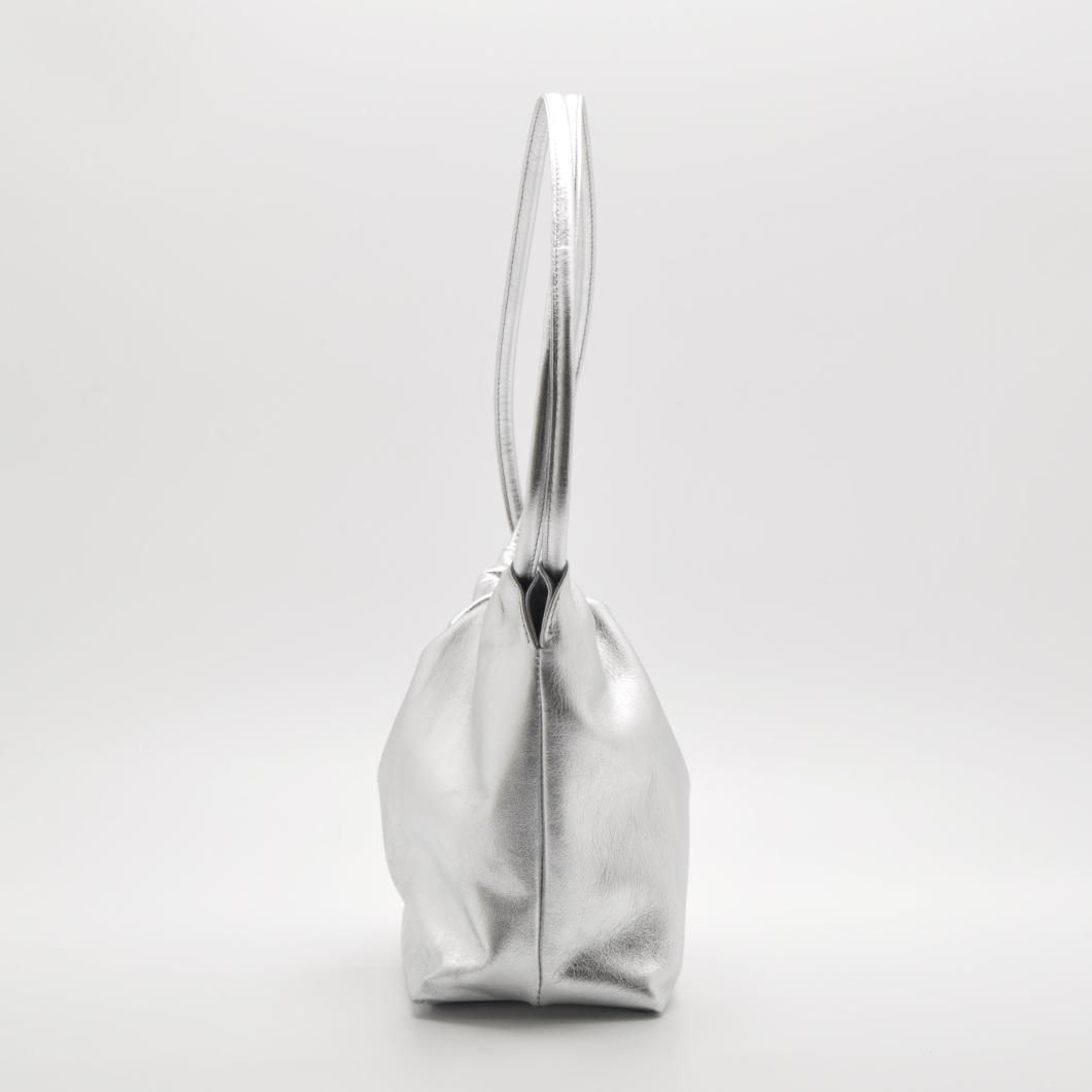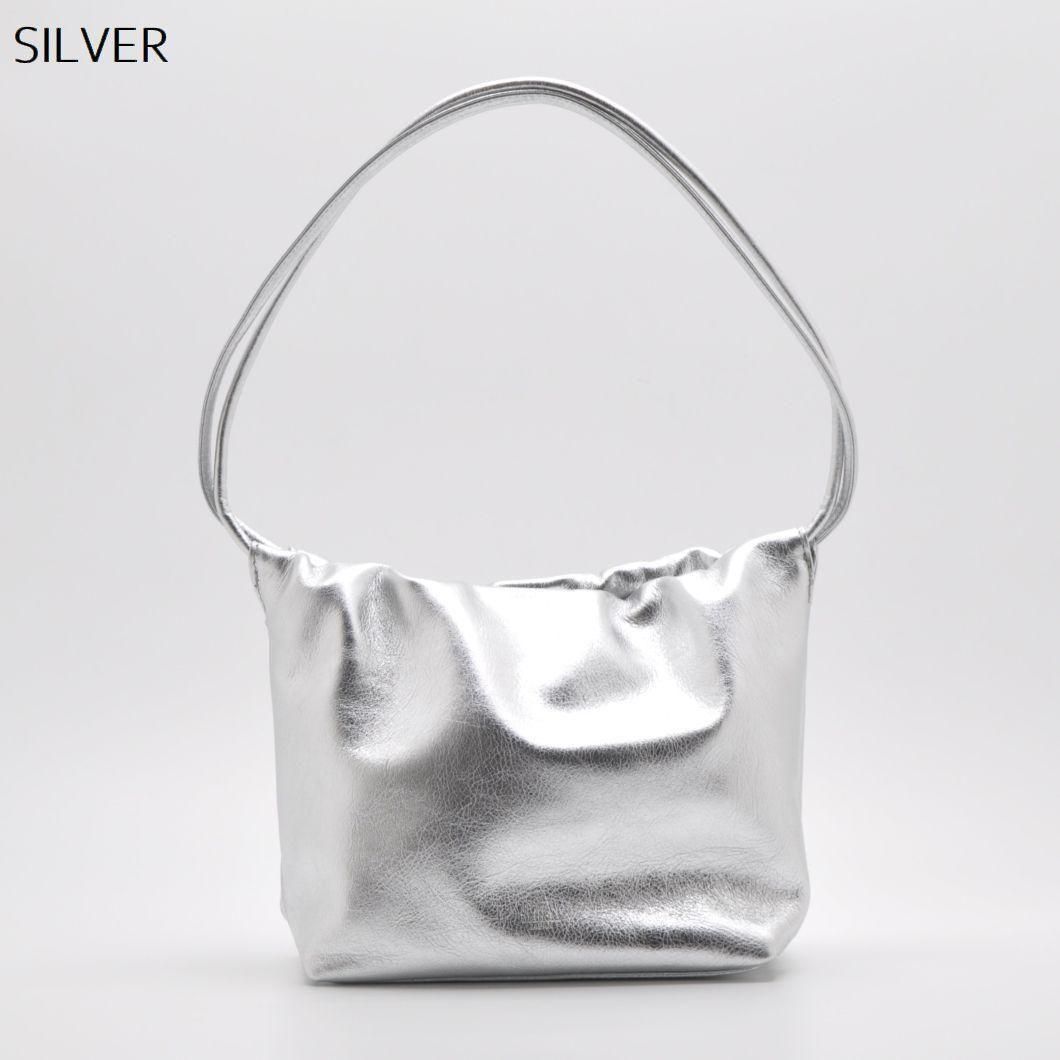 メタリックレザーを贅沢に使用したミニトートバッグ。