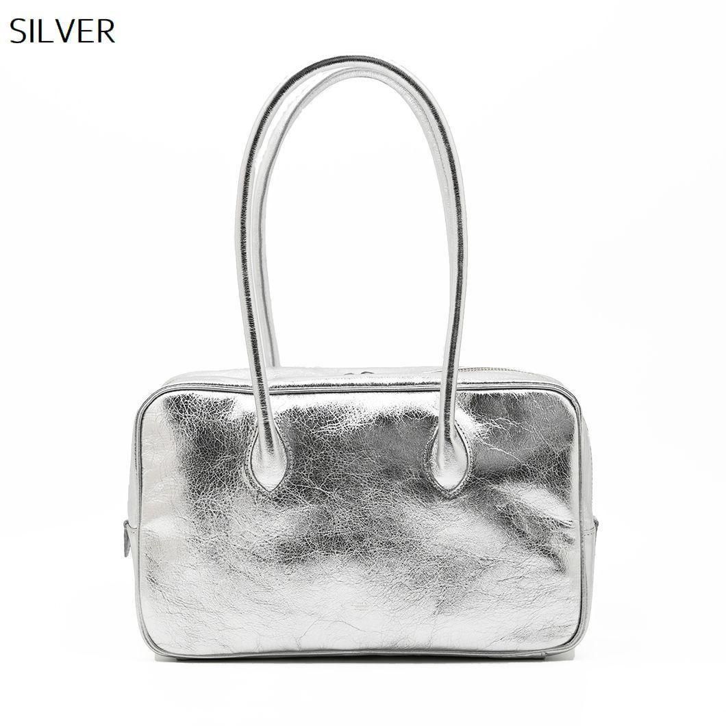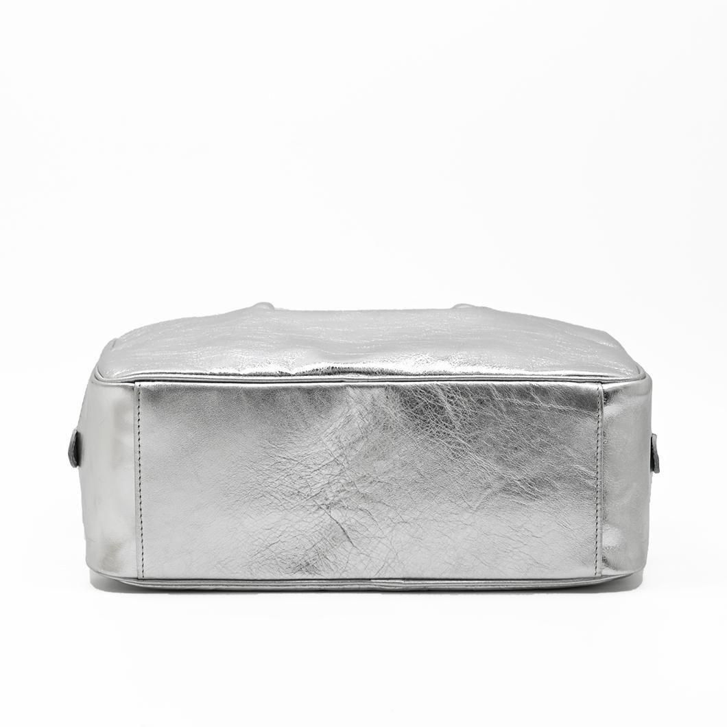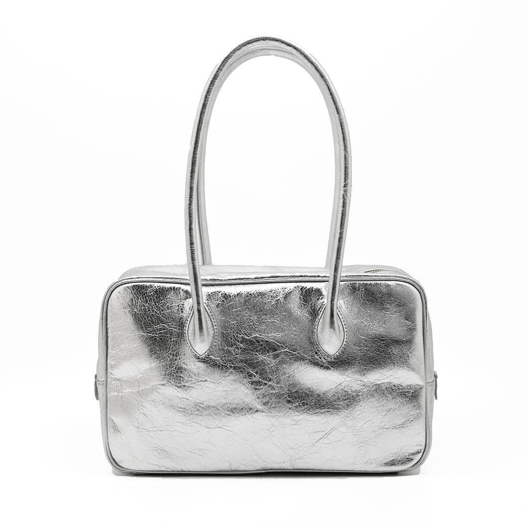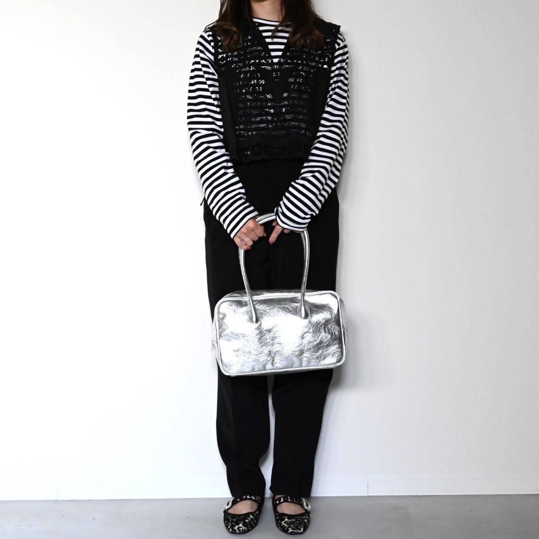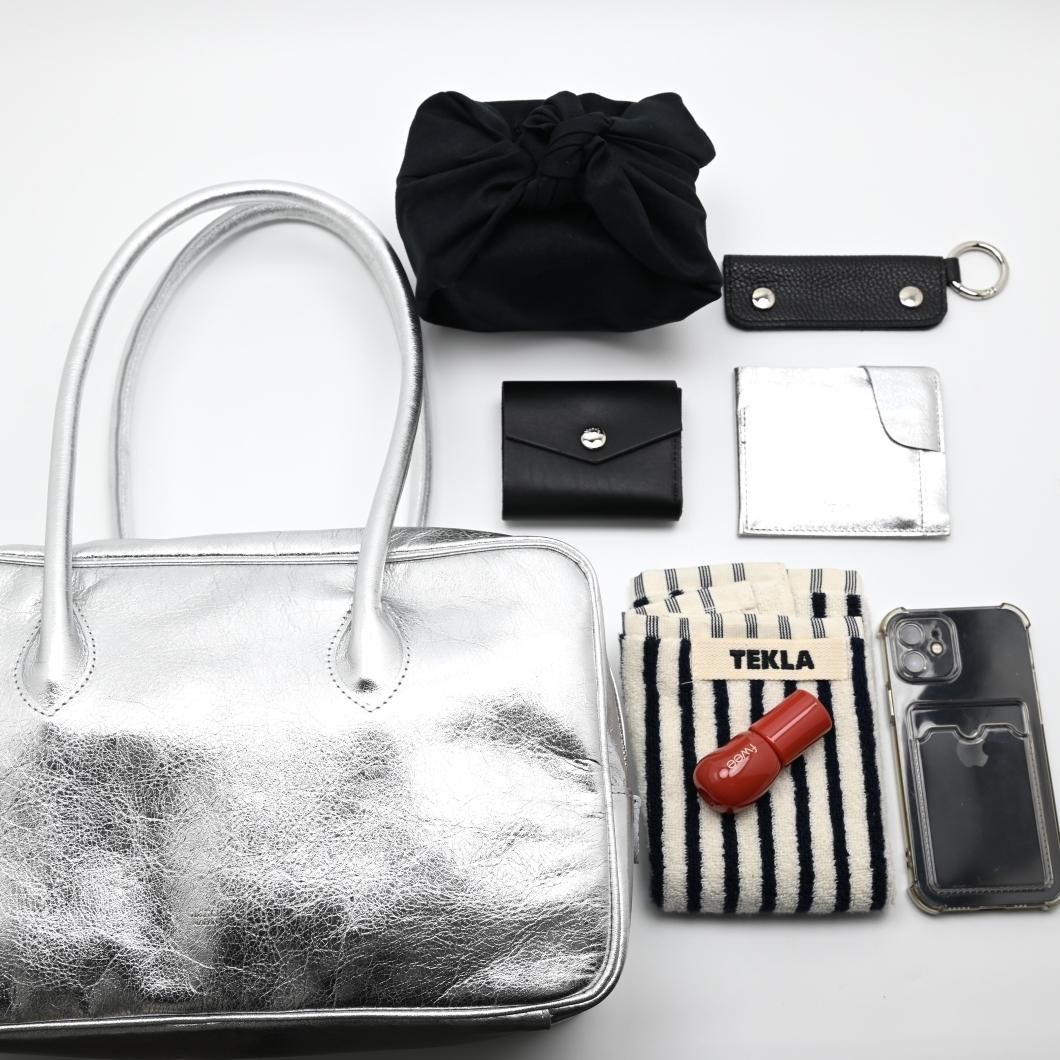 メタリックの艶めきは華美すぎず、柔らかなレザーの質感と絶妙に調和。