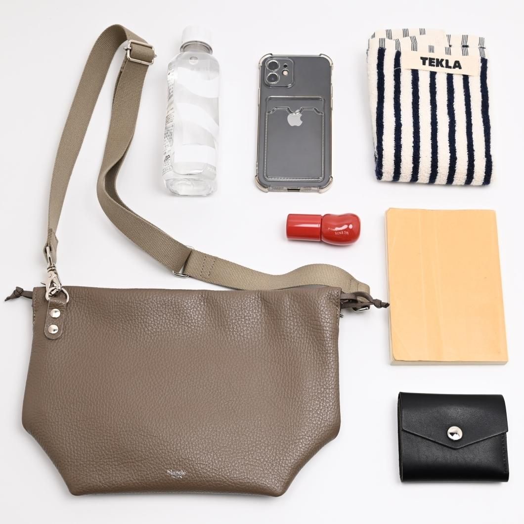見た目はコンパクトながら、財布や携帯電話、310mlペットボトル、文庫本などが収まる実用的な収納力を備えています。