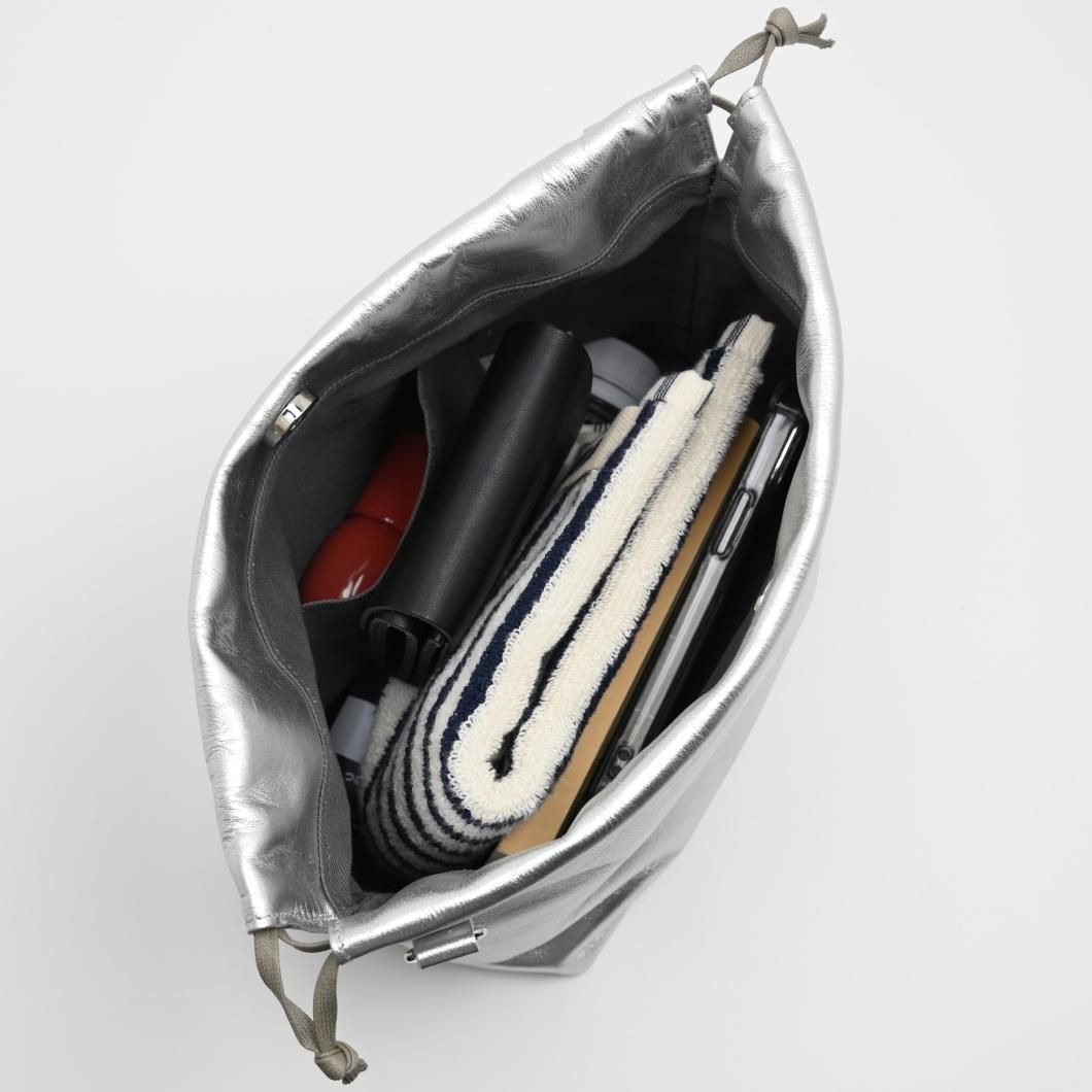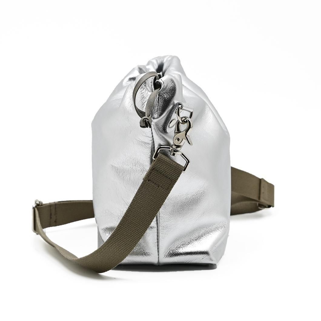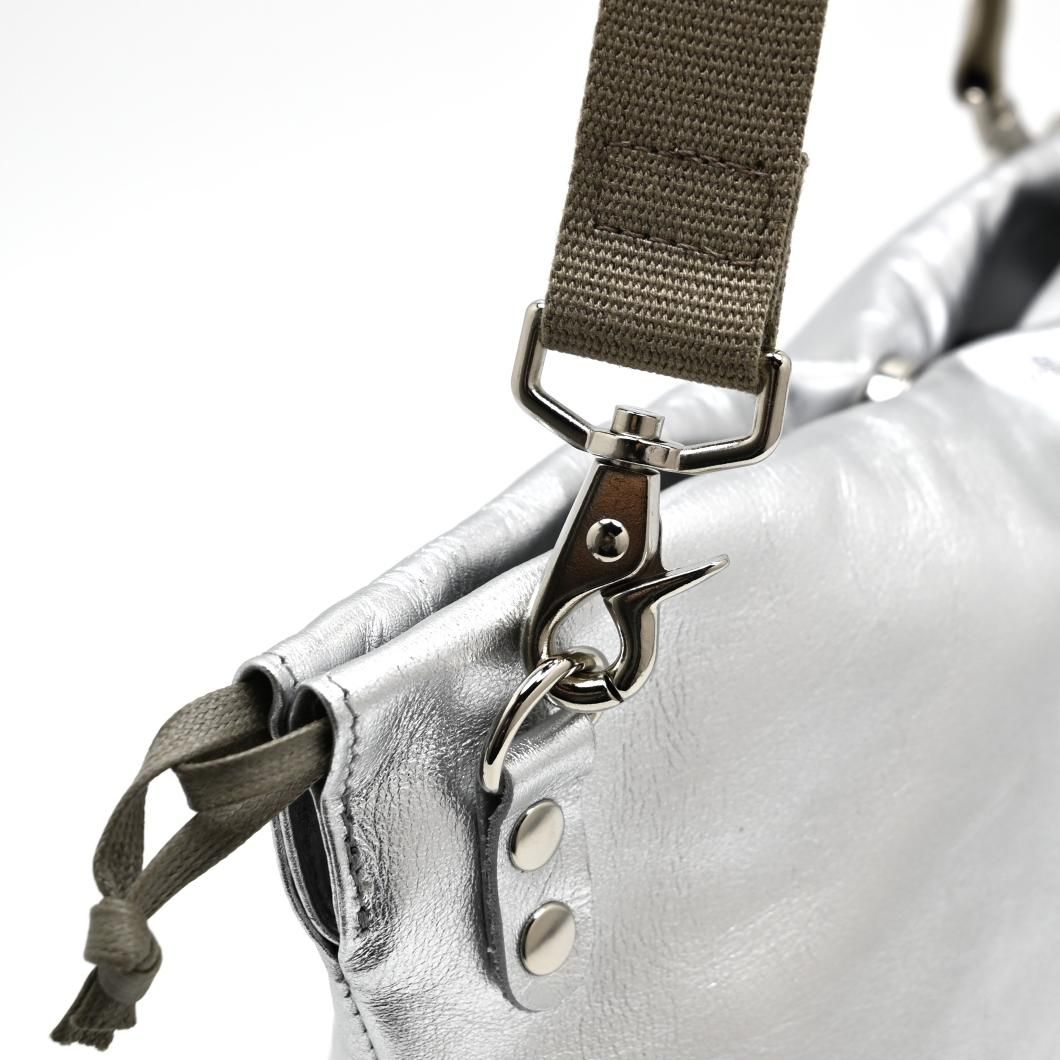 ほんのりと光を反射するメタリックレザーで仕立てた、存在感のある2WAYバッグ。